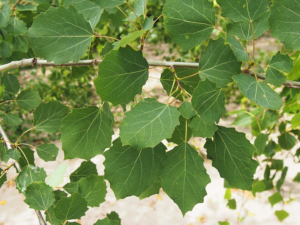 Blätter der Zitterpappel. Foto: Agnieszka Kwiecień, Nova, CC BY-SA 4.0 https://creativecommons.org/licenses/by-sa/4.0, via Wikimedia Commons